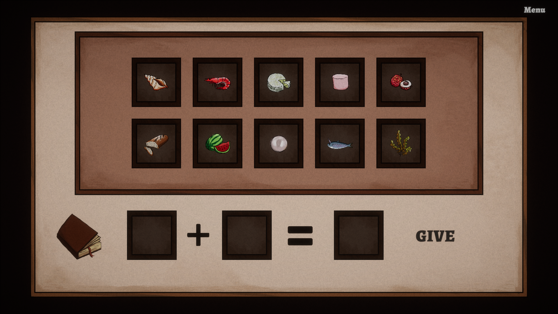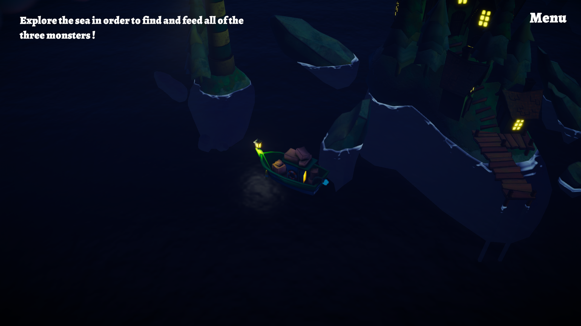 A video game created as part of a group project (with Sylvain Boisel and Norah Fery) during a game jam with the theme “delivery.” Players take on the role of a grandmother who must feed monsters from the depths according to specific recipes, at the risk of being devoured herself.